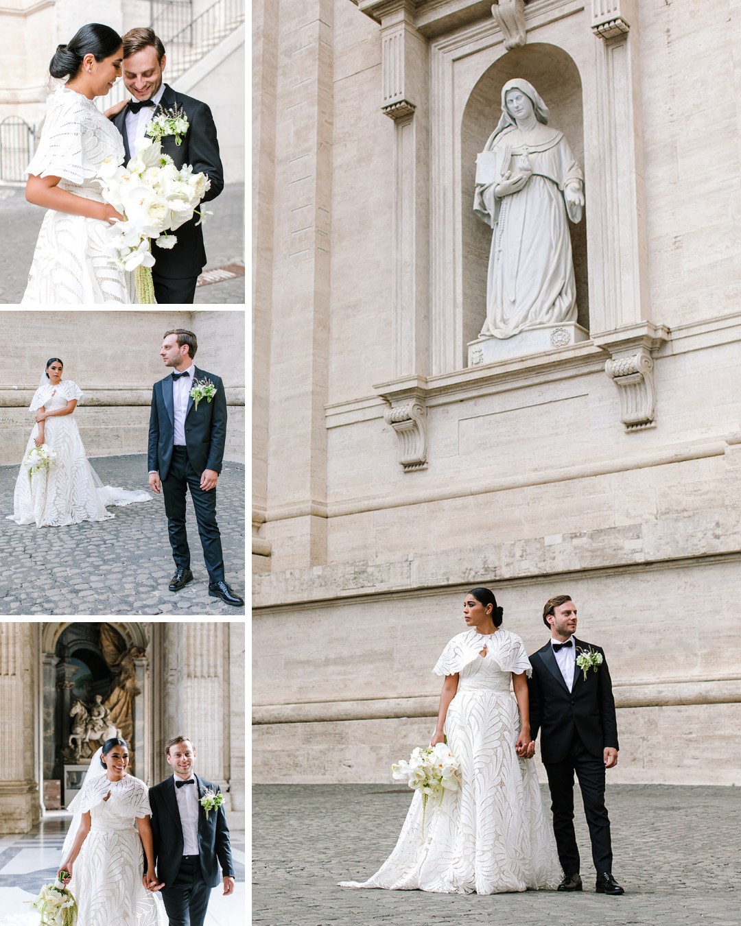 “We explored several destinations within Italy but landed on Rome thanks to its connectivity… and getting a magical YES from St. Peter Basilica made the decision very easy,” the bride says. Rome’s accessibility, paired with the spiritual and personal significance of the basilica, made it the perfect destination.