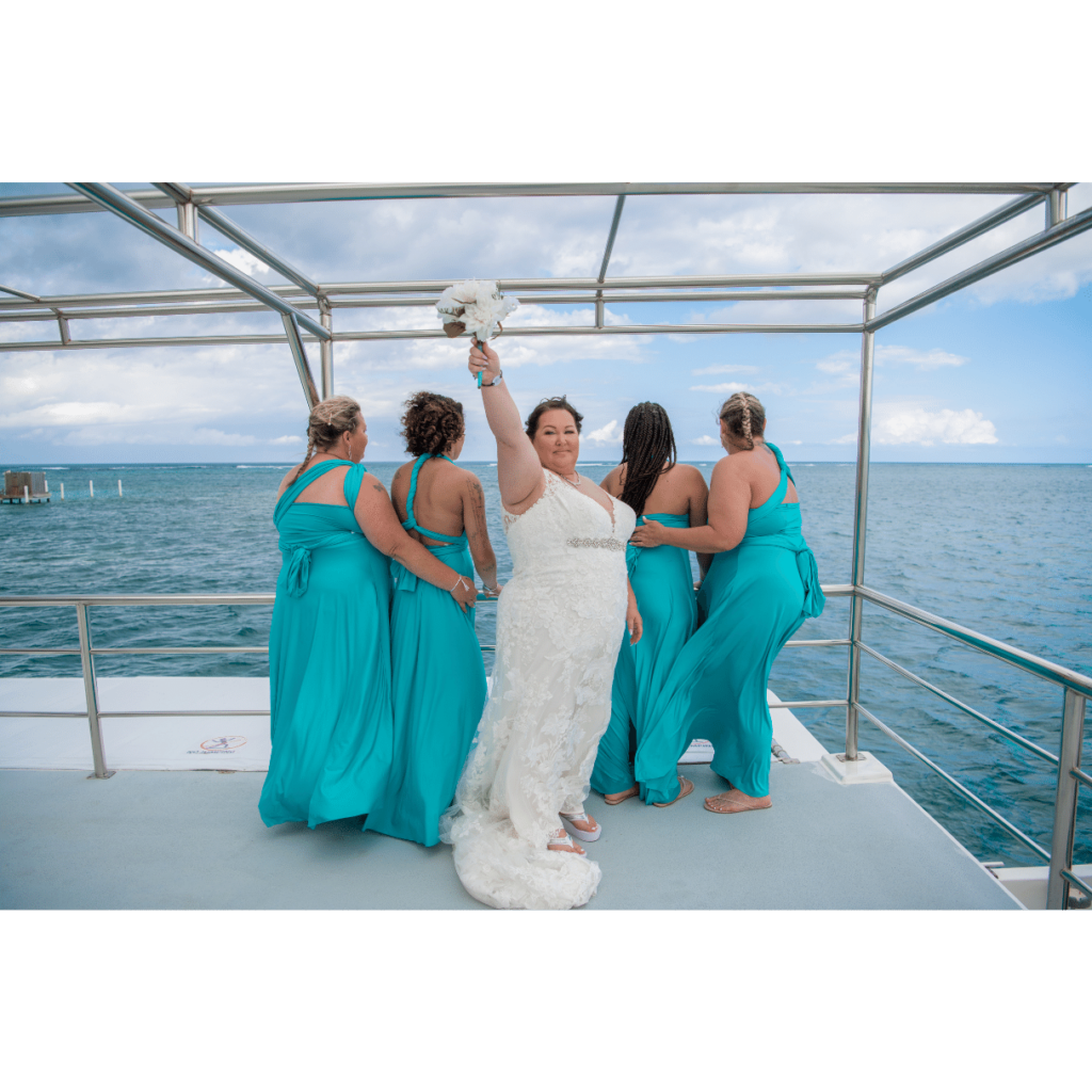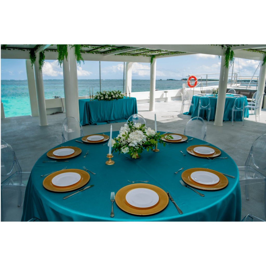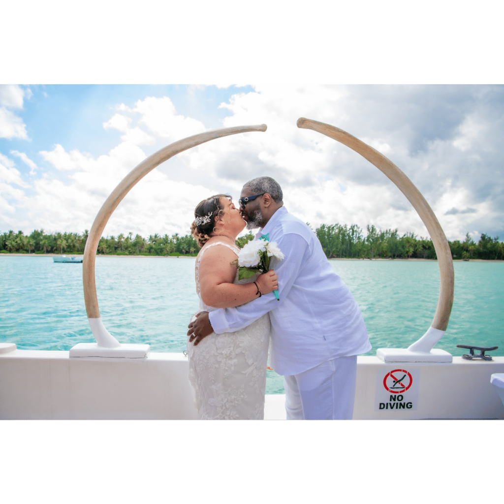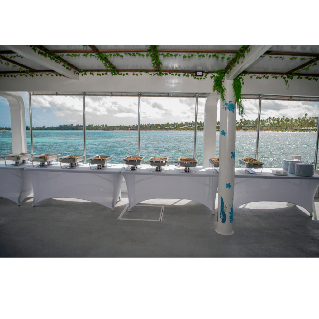 Couples can choose the sailing time starting in the morning for a wedding cruise with open bar packages, appetizers and snorkeling until 6 pm, ending at the Punta Cana golden hour enchanting glow.